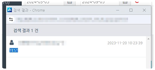 새창이 뜨며 검색이 되었습니다. 해당 내용의 전 후 채팅을 보고싶다면, 검색된 채팅을 클릭하면 돼요.