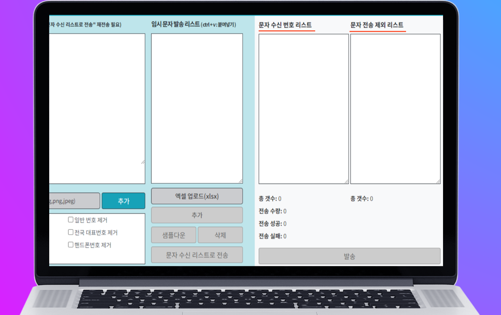 또한, 문자를 수신할 번호 리스트와 문자 전송을 제외할 리스트를 구분하여 확인할 수 있으므로 혹여나 발생할 문자 실수를 사전에 방지하고 꼼꼼히 확인하기에 편리합니다.