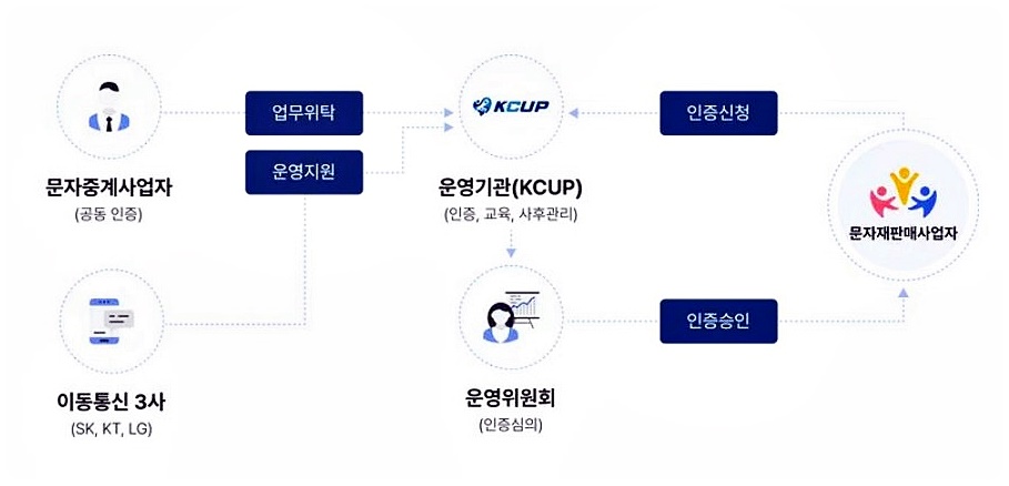 이동통신3사를 비롯한 문자중계사업자가 전송자격인증제 운영기관, 운영위원회를 통해 문자재판매사업자를 대상으로