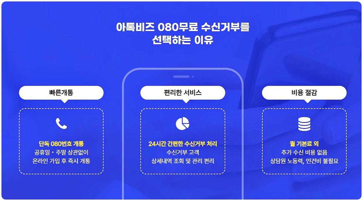 080무료수신거부번호는 아톡비즈 080 무료 수신거부 사이트를 통해 온라인 가입으로 빠르게 개통하여 사용할 수 있는데요.