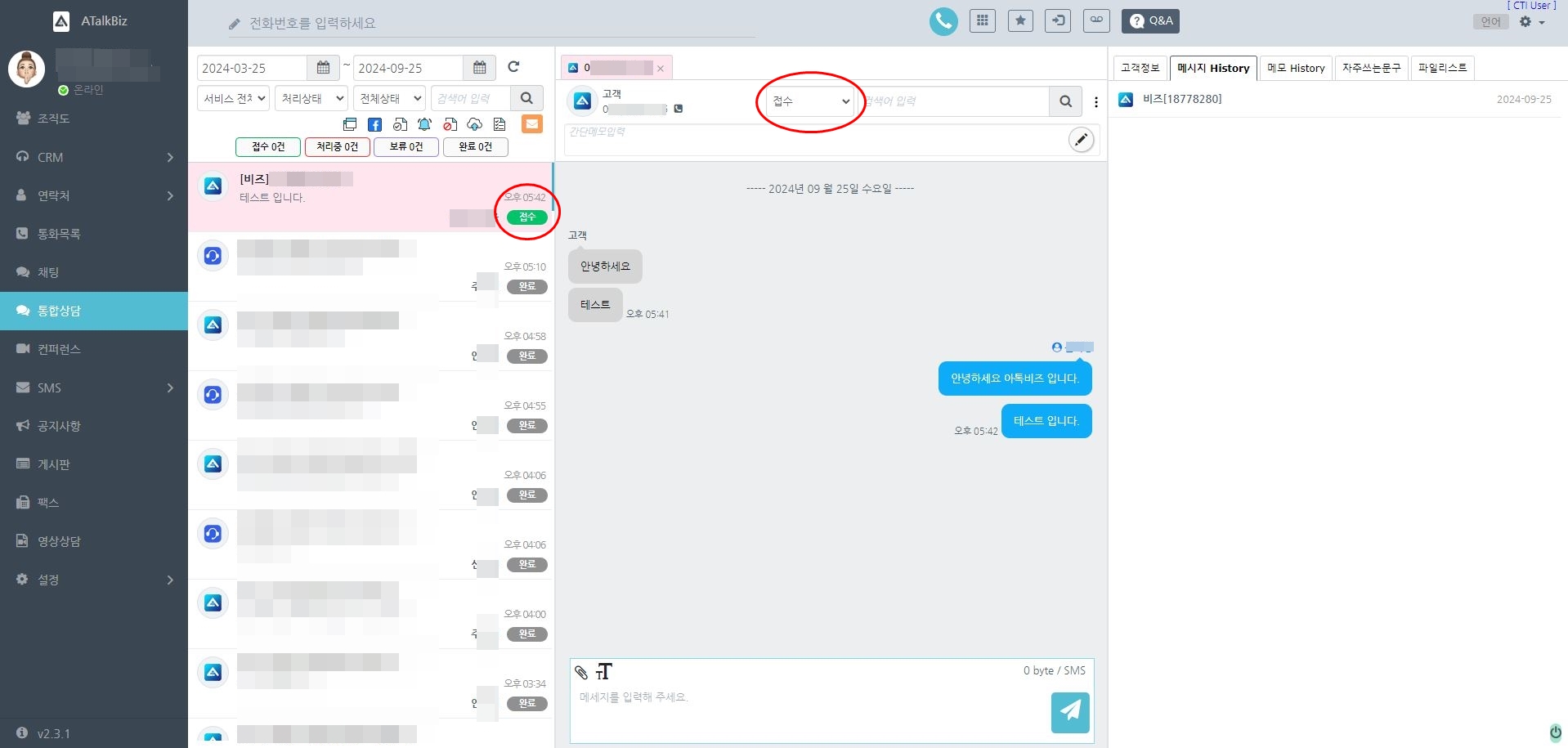 방금 설명 드린 처리 상태와 상담 내용은 아톡비즈 통합상담을 함께 사용하고 있는 상담원들 간 확인하고 공유할 수 있어요.