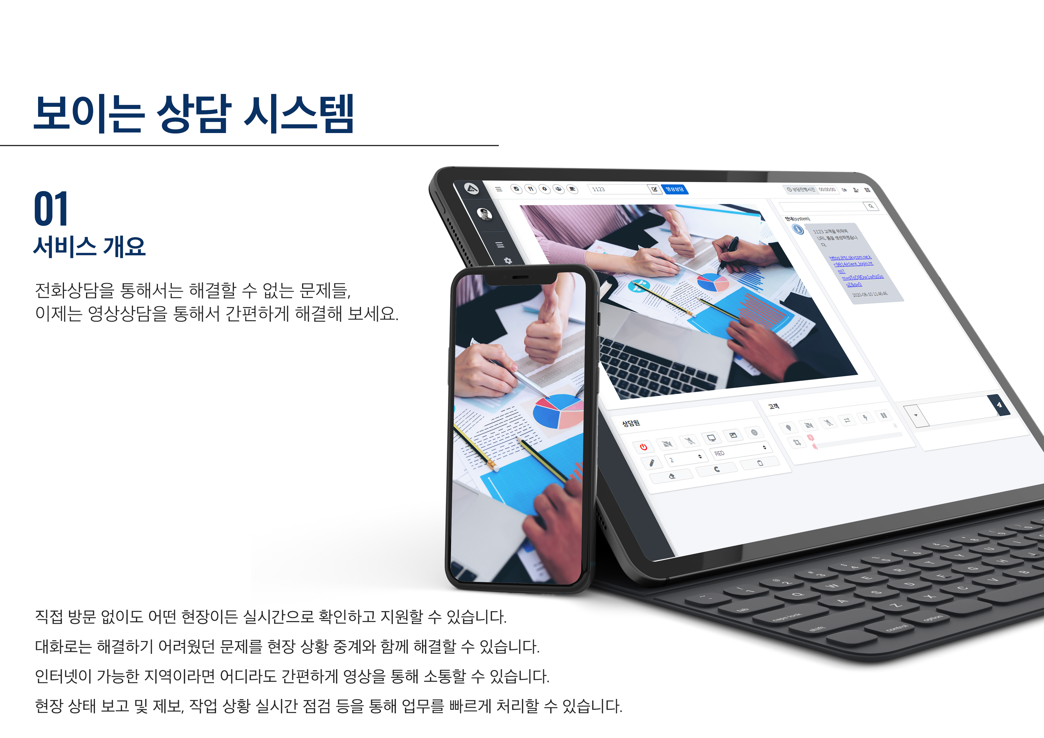 전화상담으로 해결할 수 없는 문제들을 이제는 보이는 영상상담을 통해 해결해보세요, 업무 효율성은 물론 고객만족도 높은 기업이 되는 지름길 입니다.