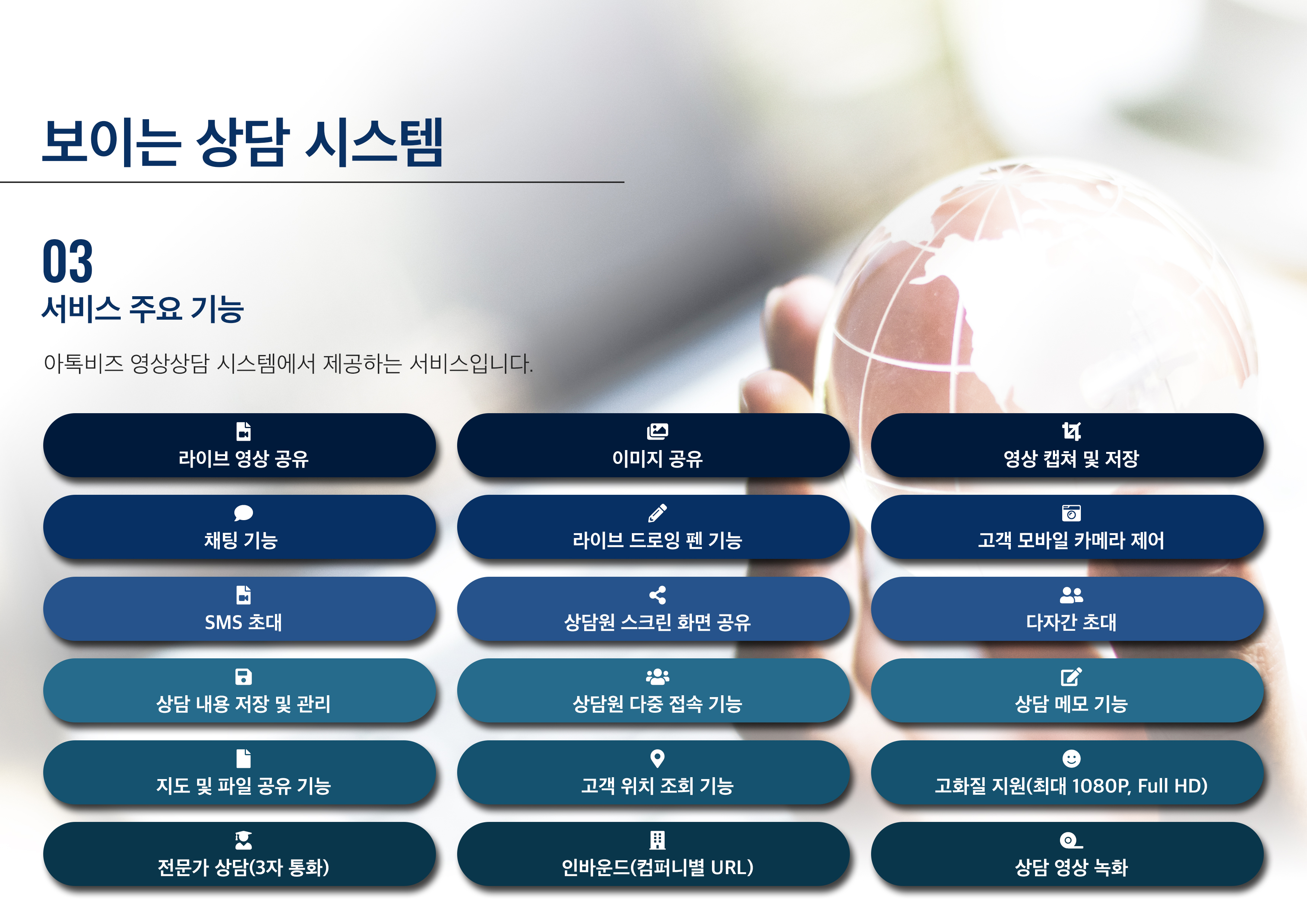 아톡비즈 영상상담 서비스 이용을 원하시는 고객님께서는 언제든지 아톡비즈로 문의 주시기 바랍니다.