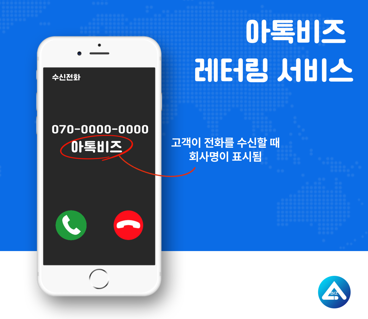 오늘 고객의 핸드폰 전화 수신 화면에 회사명을 함께 표기할 수 있는 유용한 서비스! 아톡비즈 레터링 서비스에 대해서 알아보았습니다.