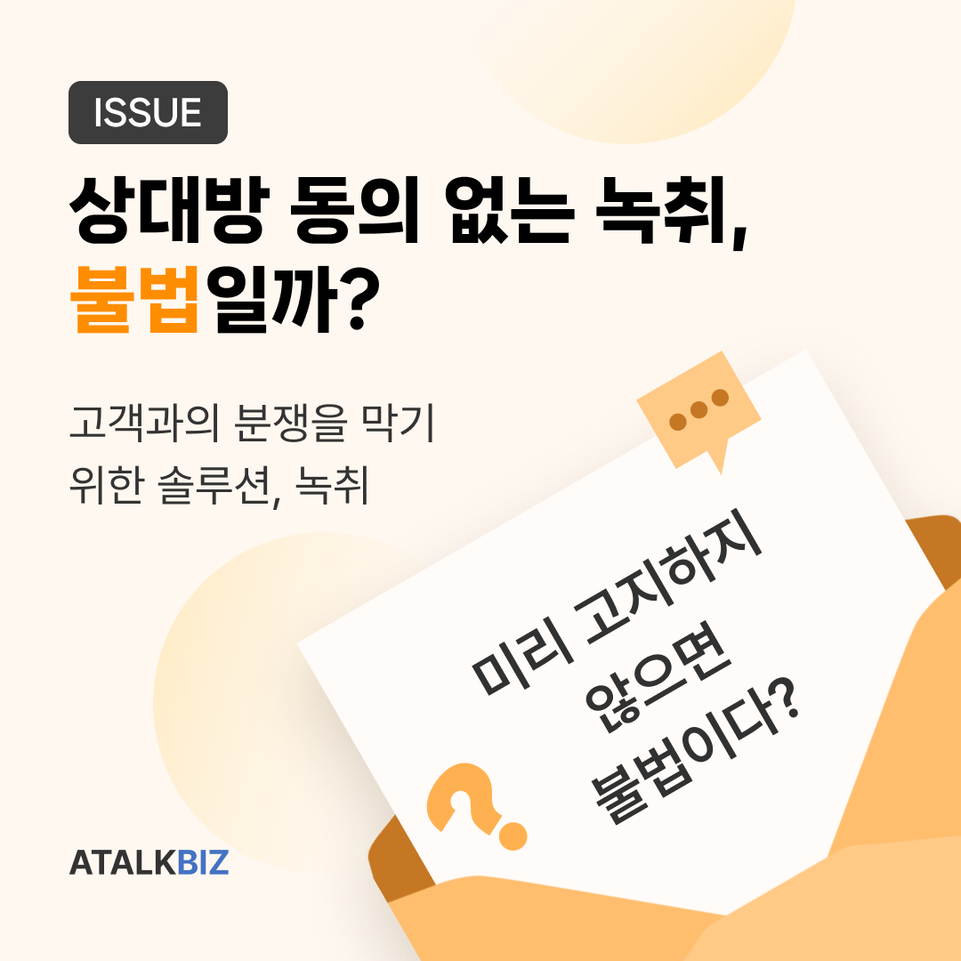 각 국가별로 법률이 다른 부분으로 인해 각 나라의 핸드폰에 기본 탑재 되어 있는 녹음 기능에서도 차이점이 보일 수밖에 없는 것 같습니다. 만약 일상 생활 외에 '업무용'의 녹취가 필요하다면 아톡비즈의 녹취 기능을 통해 기기별로 다른 기능의 문제 간편하게 해결해보세요. 아이폰 사용자도 녹음 고지 없이 전수 녹취가 가능합니다.