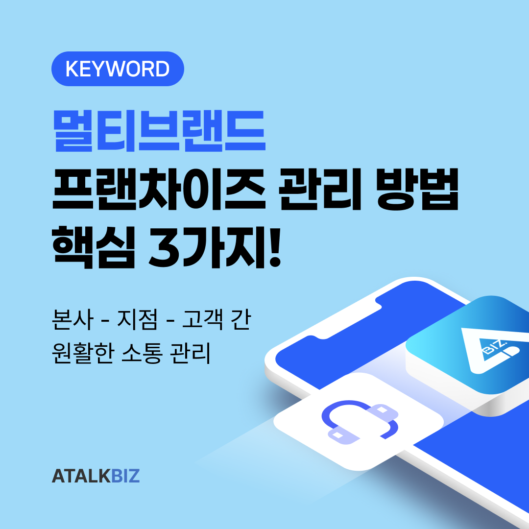 오늘은 브랜드, 프랜차이즈 관리를 체대로 하기 위한 핵심 3가지를 알아보고 그 중에서도 가장 중요한 커뮤니케이션 관리를 아톡비즈 솔루션을 통해 손 쉽게 해결할 수 있는 방법을 소개해드렸습니다.