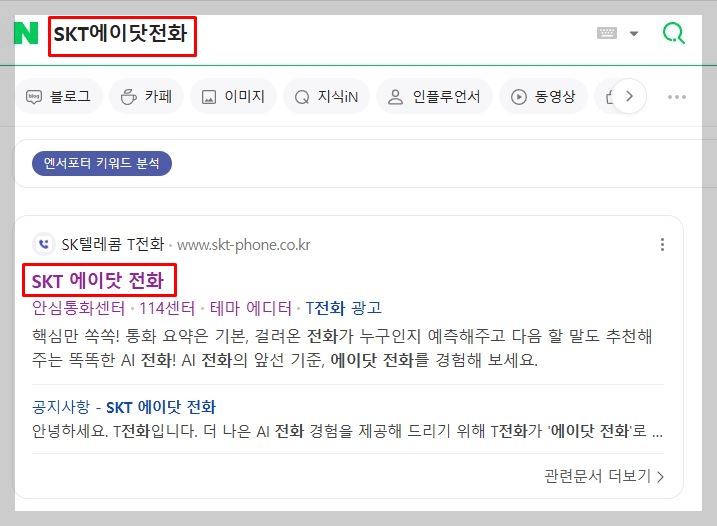 1. 네이버에 SKT에이닷 전화 검색 후 사이트 접속하기