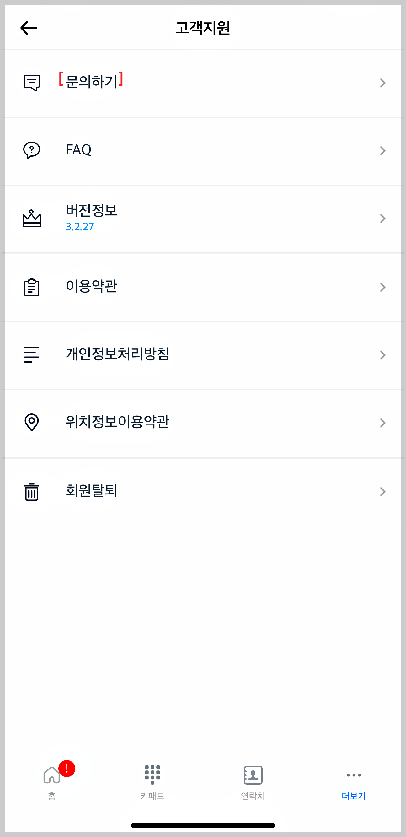 2. 더보기 탭에서 고객지원 선택하기