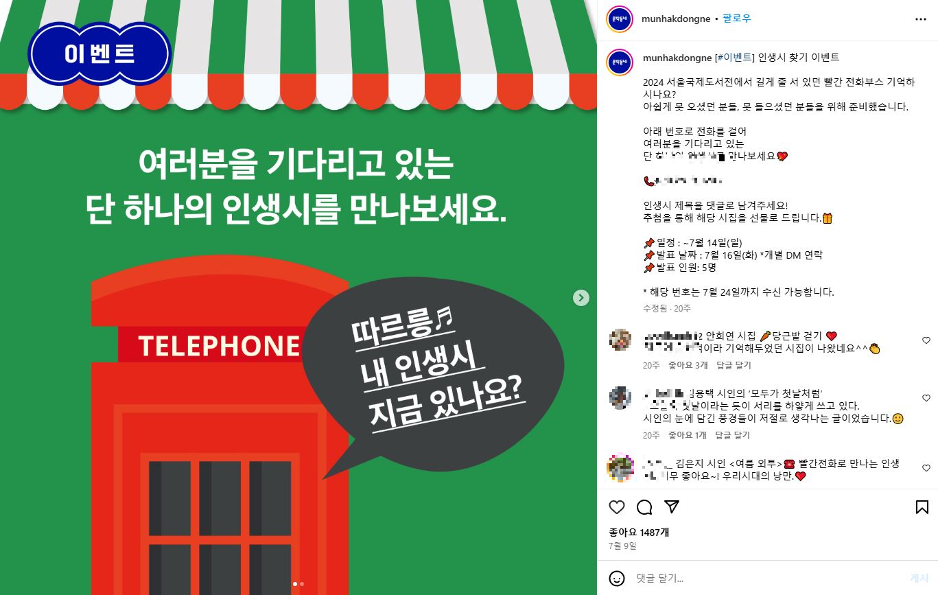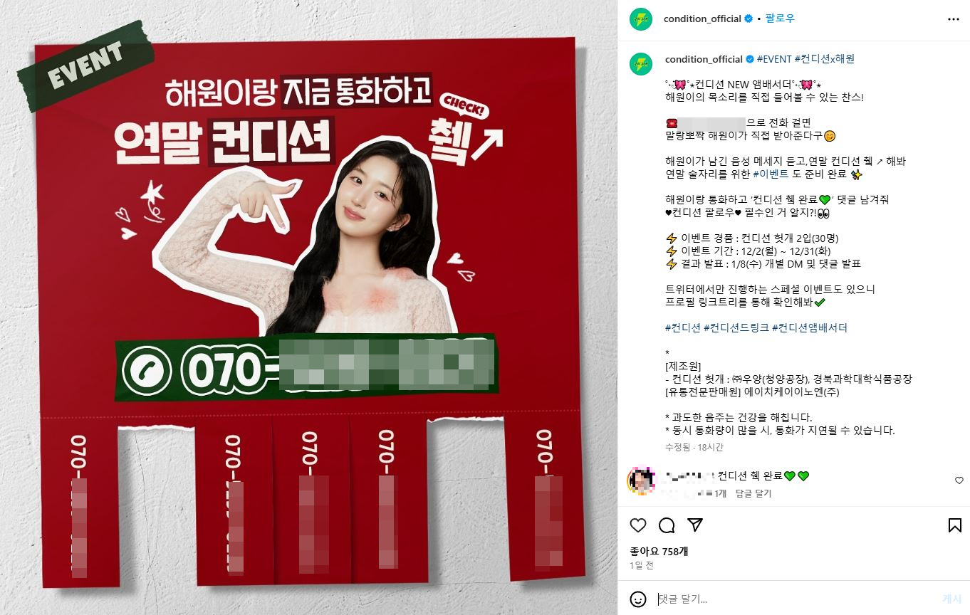 전화를 걸면 나의 인생시를 랜덤으로 읽어주는 문학동네의 ARS이벤트, 전속 모델인 해원의 연말 응원 멘트를 들을 수 있는 컨디션 ARS이벤트예요. 이 외에도 많은 기업에서 ARS이벤트를 활용하고 있어요.