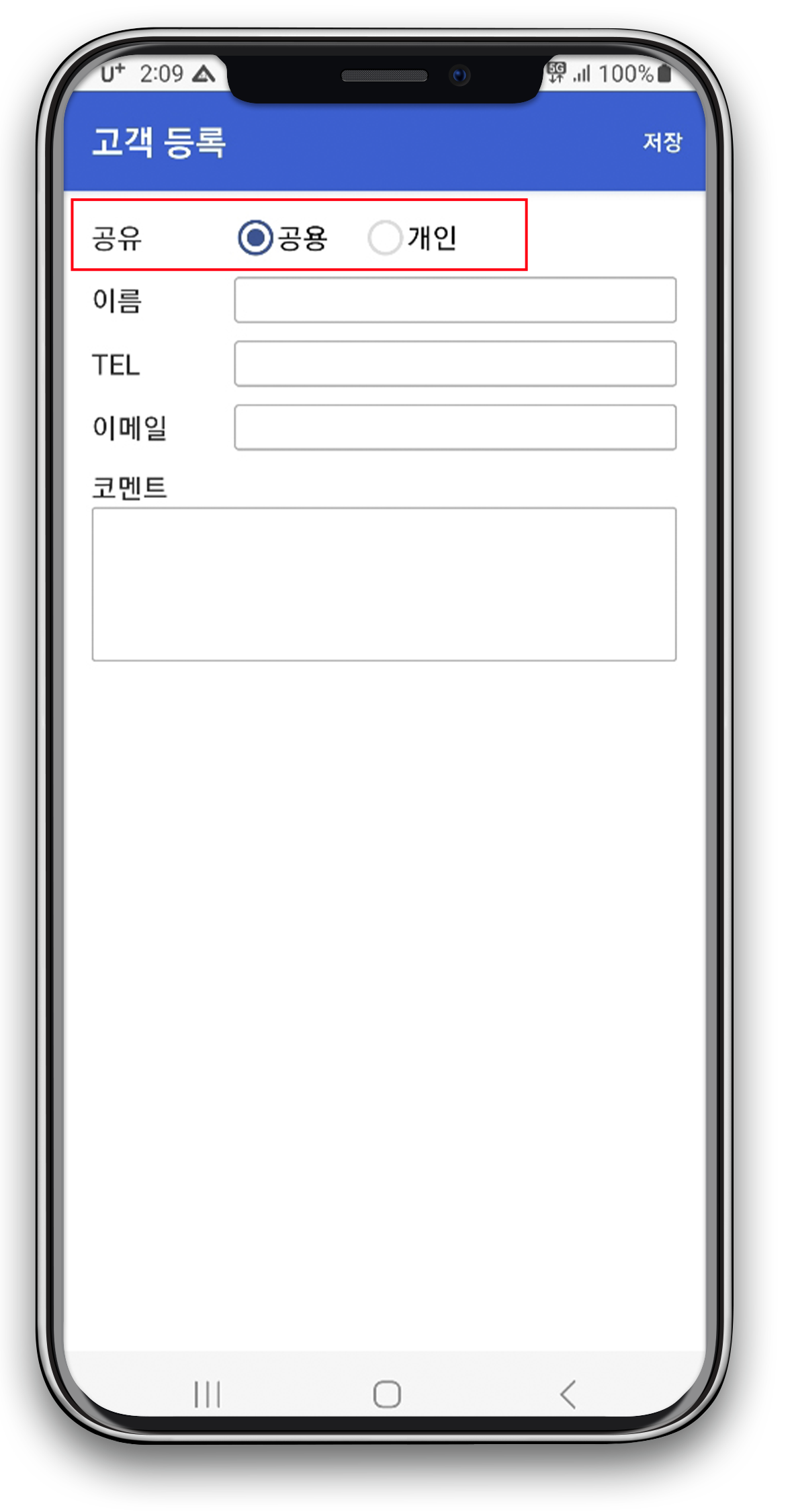 고객을 저장할 때 공용, 개인으로 분류하여 저장할 수 있어요.