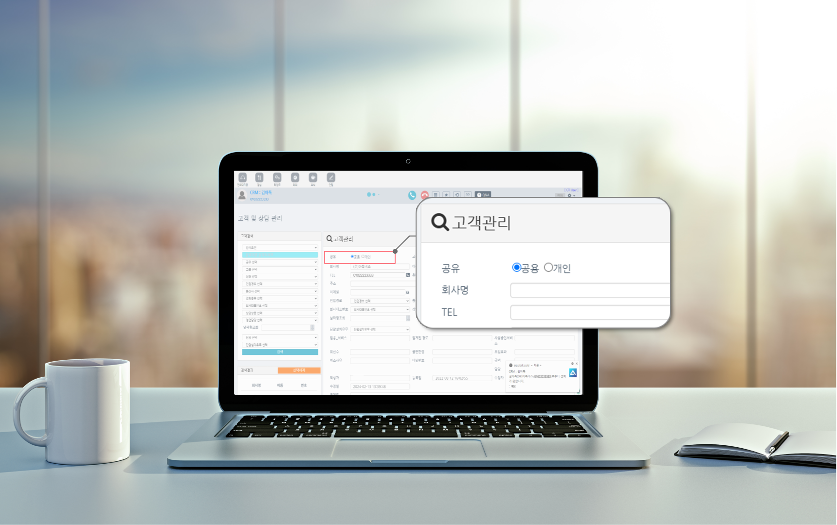 상담원간 무조건 공유가 필요한 고객도 있지만 각 직원마다 개인적으로 관리를 하되 관리자에게만 공유가 필요한 사항이 있는데, 저장을 할 때 공용인지 개인인지만 선택하여 저장만 하면 되기 때문에 고객 관리를 하는 직원과 이를 확인하는 관리자 모두 편리해요.