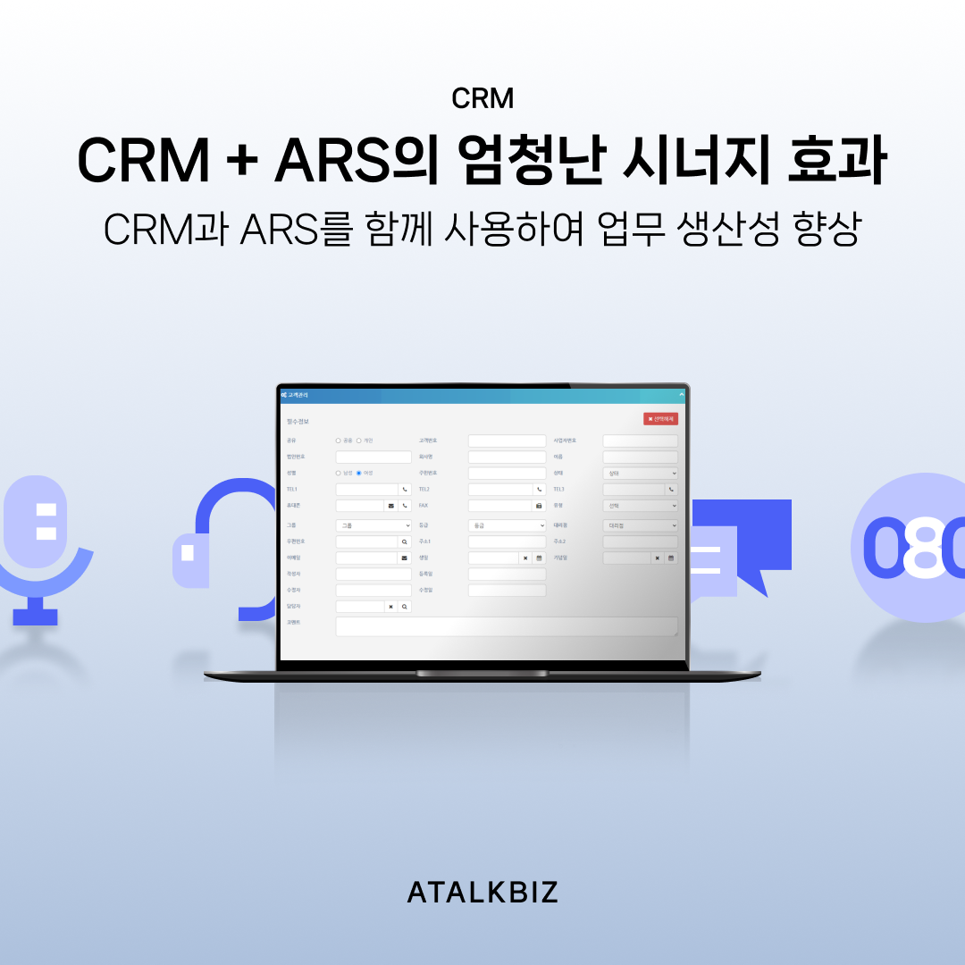 고객관리와 상담관리를 위한 CRM 솔루션과 전화상담의 효율을 높이기 위한 ARS 서비스를 같이 활용하여 업무를 더욱 체계화하고 생산성을 높일 수 있습니다.