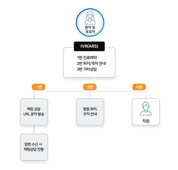 ◾ ARS를 활용하여 환자의 문의를 구분하고, 병원 위치/주차 등 단순한 안내는 상담원 연결 없이 ARS로 해결