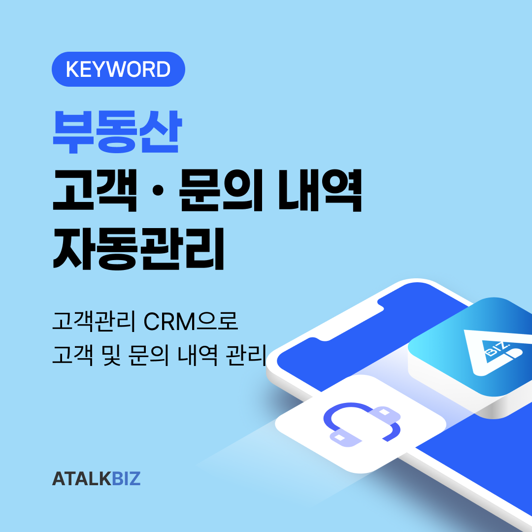 아톡비즈 고객관리 프로그램을 통해, 부동산 고객과 상담문의 내역을 가장 체계적이고 편리하게 관리하세요. 업무 환경의 상승은 기업의 긍정적인 결과의 상승으로 이어지니까요!