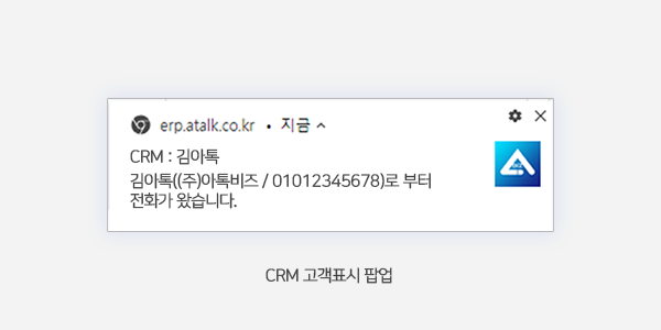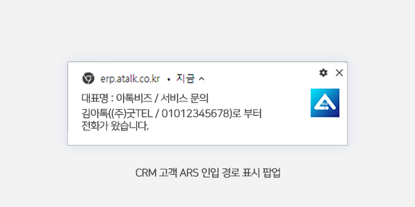 * 아톡비즈 CRM + ARS(IVR) 팝업