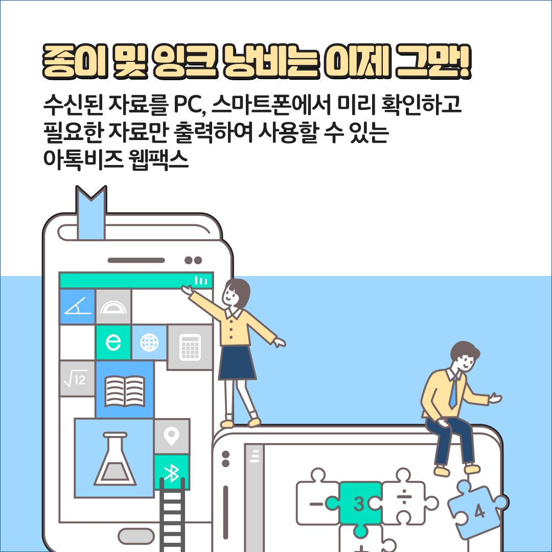 아톡비즈 웹팩스 서비스를 이용해 스마트폰, PC에서 팩스를 언제, 어디에서나 자유롭게 이용해보세요.