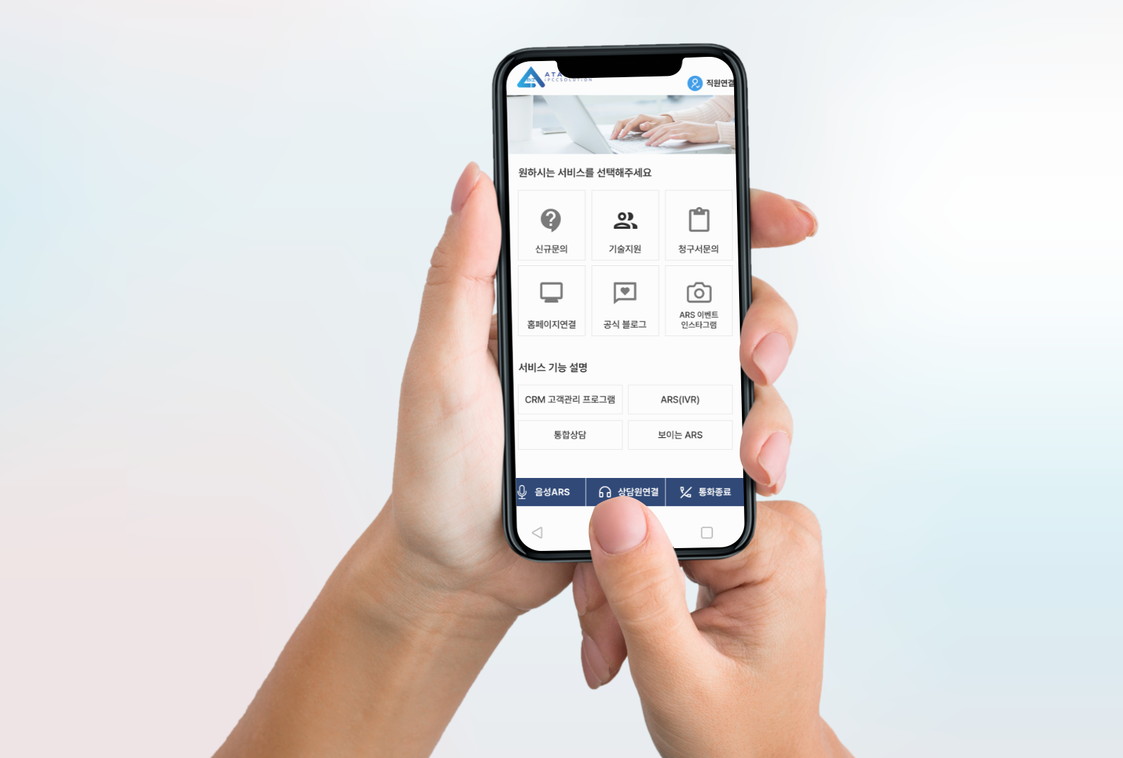 또한 스마트폰에 별도 앱 설치 없이 고객센터에 전화를 거는 것만으로도 핸드폰 화면에 메뉴가 자동으로 활성화되어 누구나 손쉽게 사용할 수 있습니다.