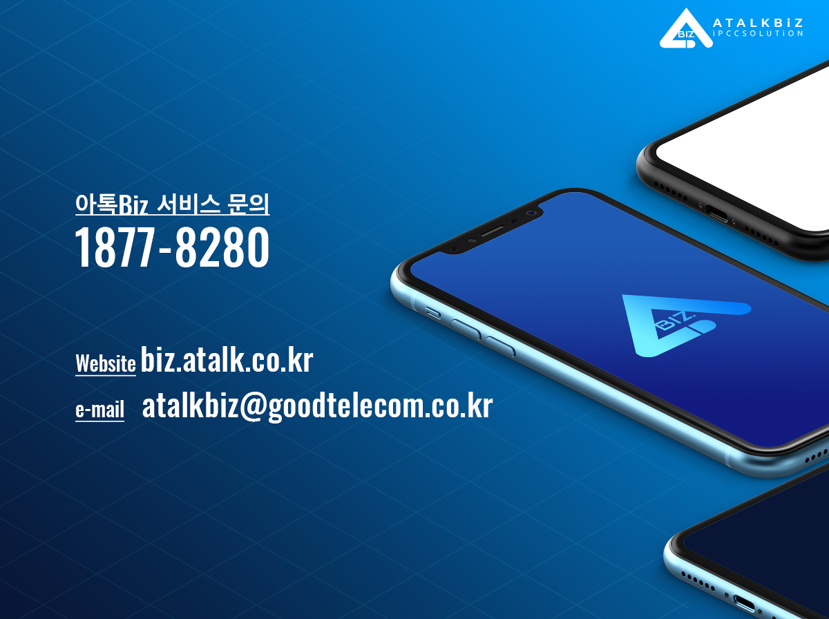 대표번호, 또는 기존 사용하고 계시던 회사전화번호가 있으시더라도 그 번호 그대로 아톡비즈의 다양한 서비스를 이용하실 수 있습니다. 전화 연결음에 자동응답 멘트 설정부터 외부에서도 사무실 번호로 전화를 걸고 받을 수 있는 기능까지, 아톡비즈는 기업에서 사용할 수 있는 모든 전화방식을 구현합니다. 외근중에도 사무실과 내선통화를 하실 수 있스으며, 외부에서 업무용 전화와 개인용 전화를 분리하여 사용하실 수 있습니다. 아톡비즈 시스템을 이용해 업무환경을 개선해보세요 :)
