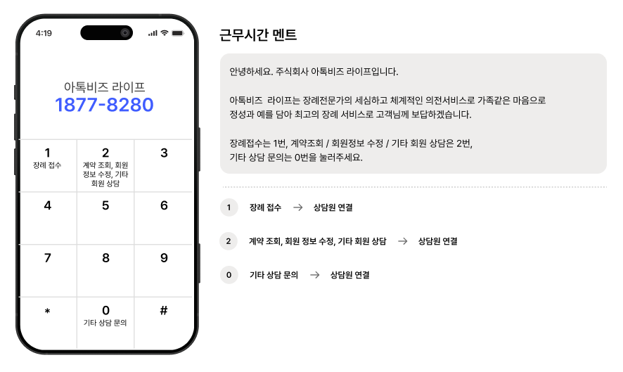 ◼ 다른 장례 서비스업의 업무시간 멘트 구성을 확인해보세요.