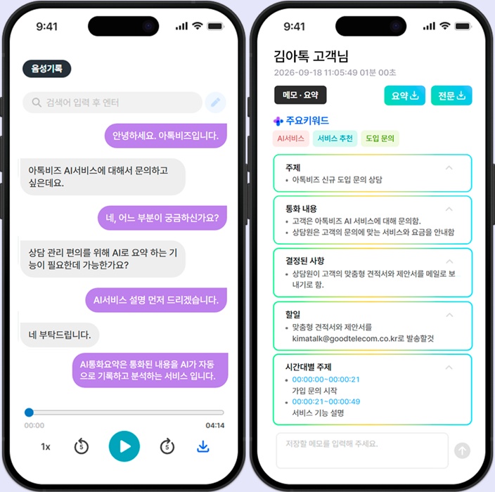 2️⃣AI가 긴 통화를 보기 쉽게 요약해줘요.