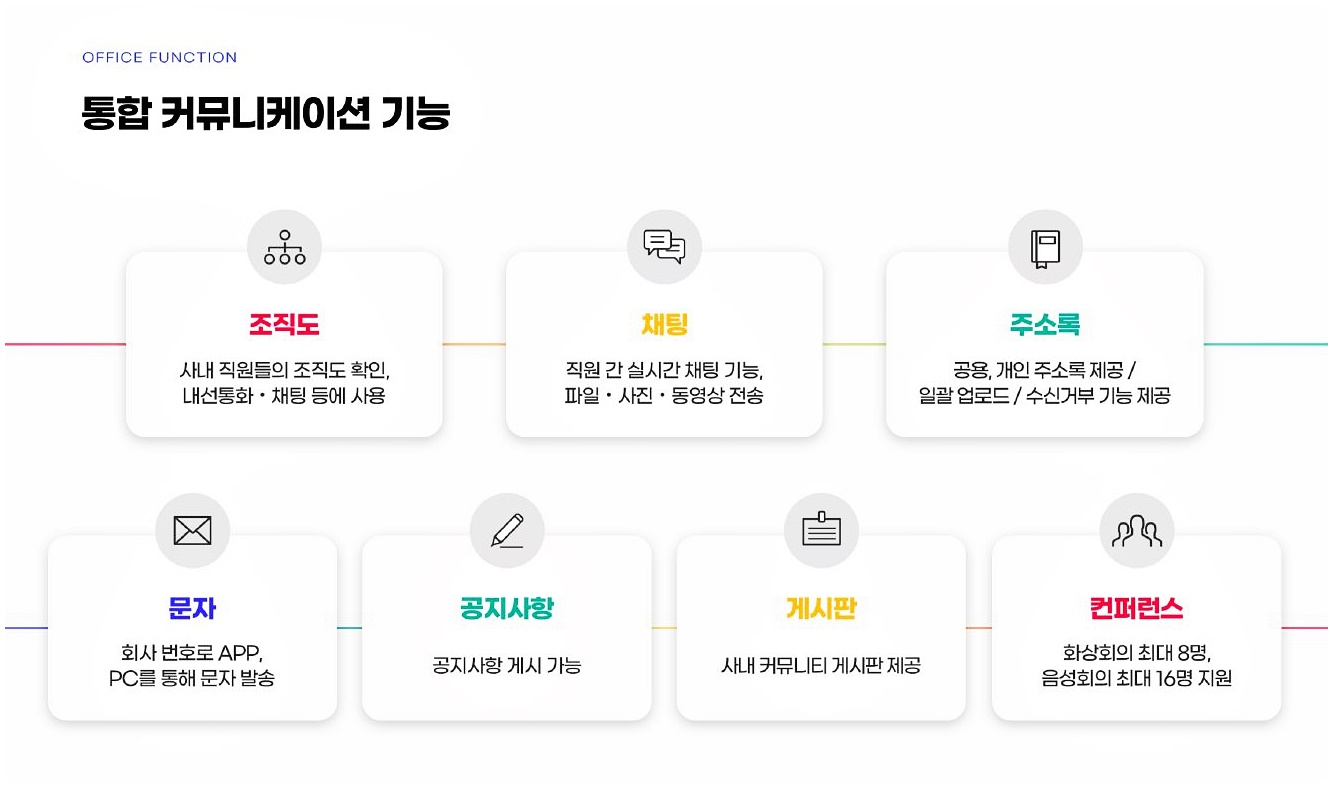 아톡비즈 오피스는 사내 메신저를 포함한 다양한 UC(Unified Communications)기능을 무료로 사용할 수 있기 때문이에요.