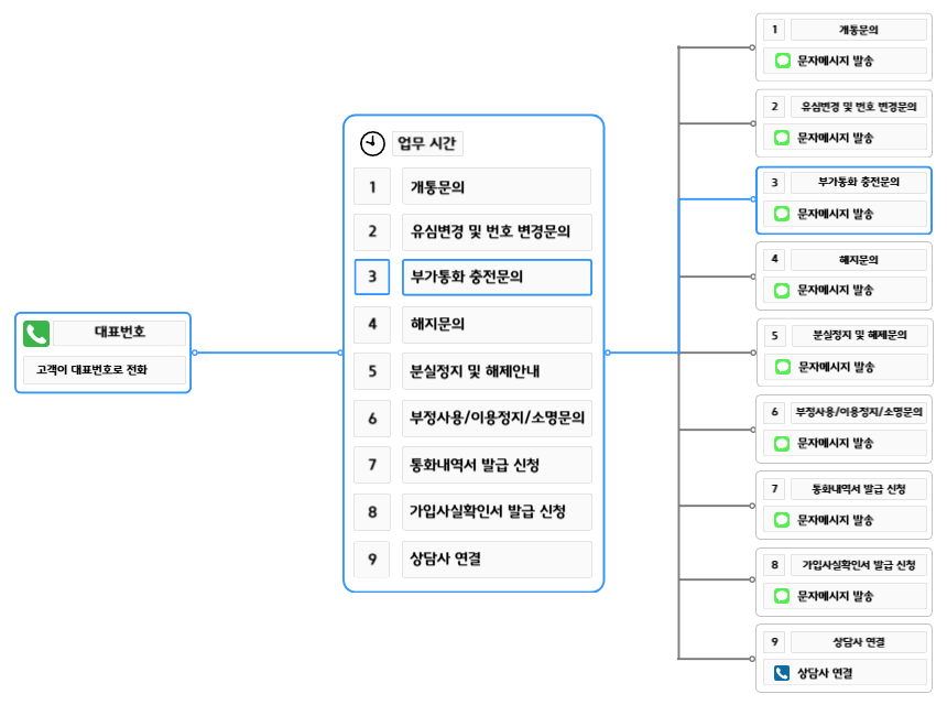 ▪️3번 부가통화 충전 문의 IVR SMS