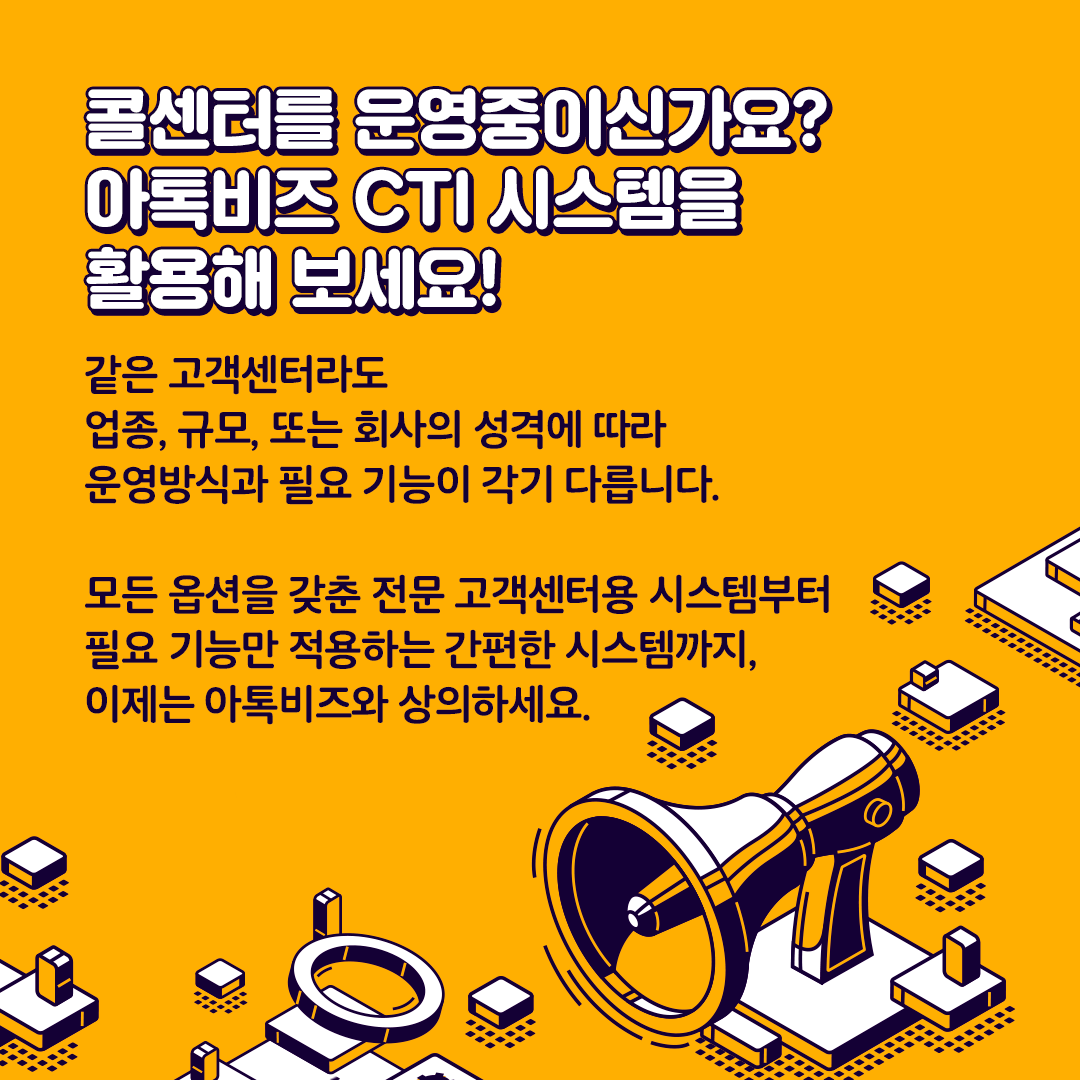 ▶ 콜센터를 운영중이시라면 아톡비즈 CTI시스템을 활용하여 더욱 편리하게 업무를 진행하세요.