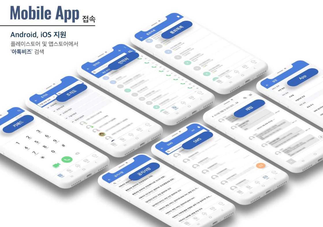 아톡비즈는 회사 번호를 PC, 모바일에서도 사용할 수 있고 내선통화, CRM연동 뿐만 아니라 녹취, 채팅상담 등등 다양한 부가서비스까지 맞춤으로 세팅할 수 있어요.