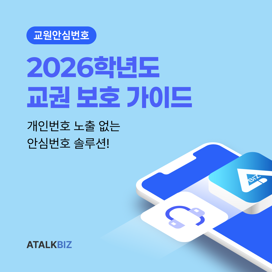 이러한 조건들을 충족하는 교원안심번호 서비스는 '아톡비즈'에서 도입할 수 있어요.