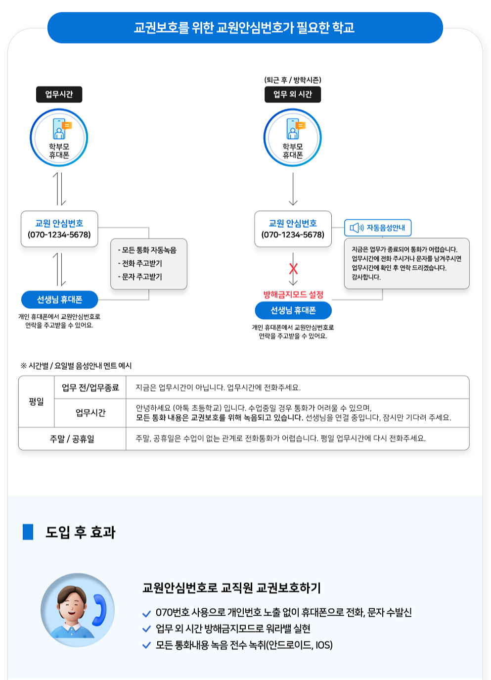 ▪️교사의 심리적 안전망 확보: 개인번호 노출 X 사생활과 업무를 분리하고 보호