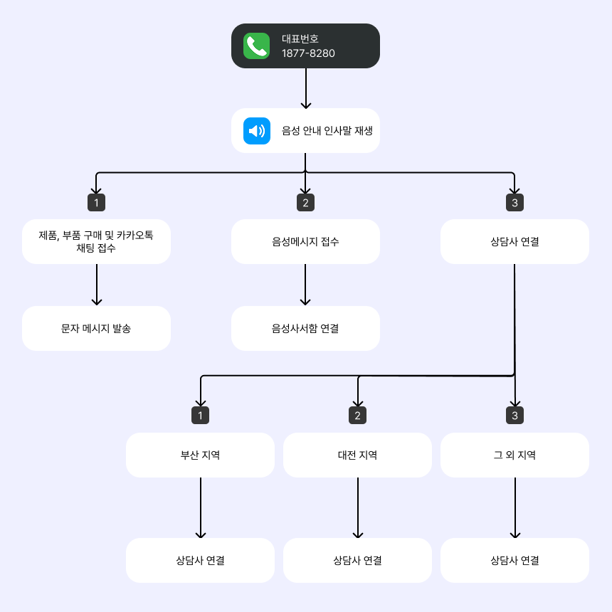 ③ 센터들이 여러 지점에 있어서 고객이 원하는 지점을 선택하면 해당 지점으로 연결되게 하고 싶어요.