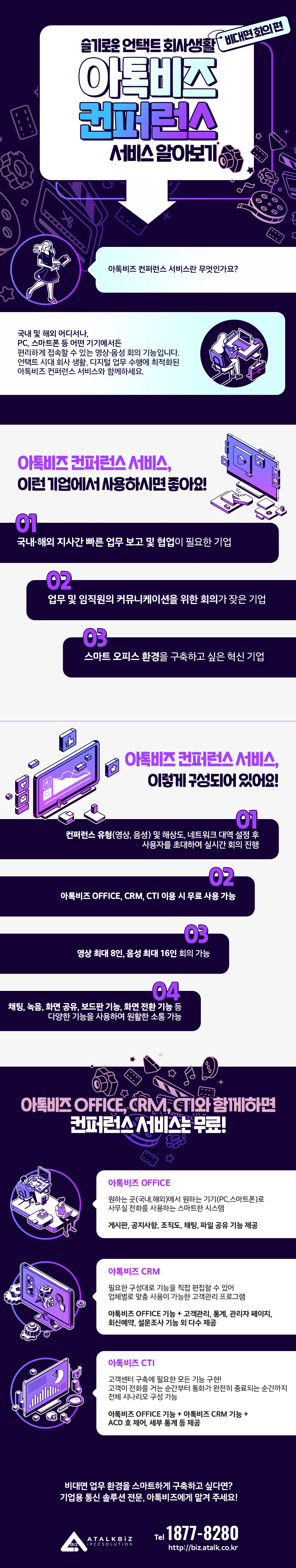 <아톡비즈 컨퍼런스 서비스>에 대해 더욱 궁금하신 사항은 언제든 아래 번호 및 네이버 톡톡으로 문의 바랍니다.