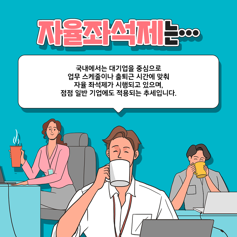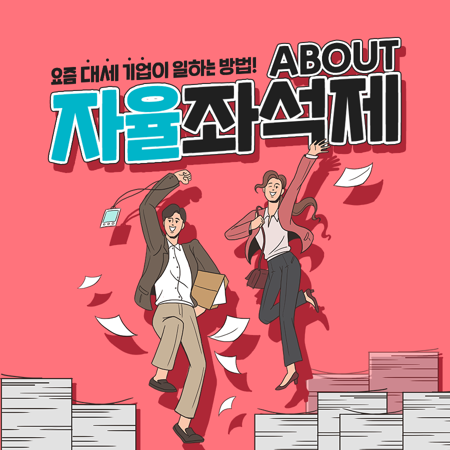 매일 출근시간, 원하는 자리를 선택하여 업무를 진행할 수 있는 <자율좌석제>
