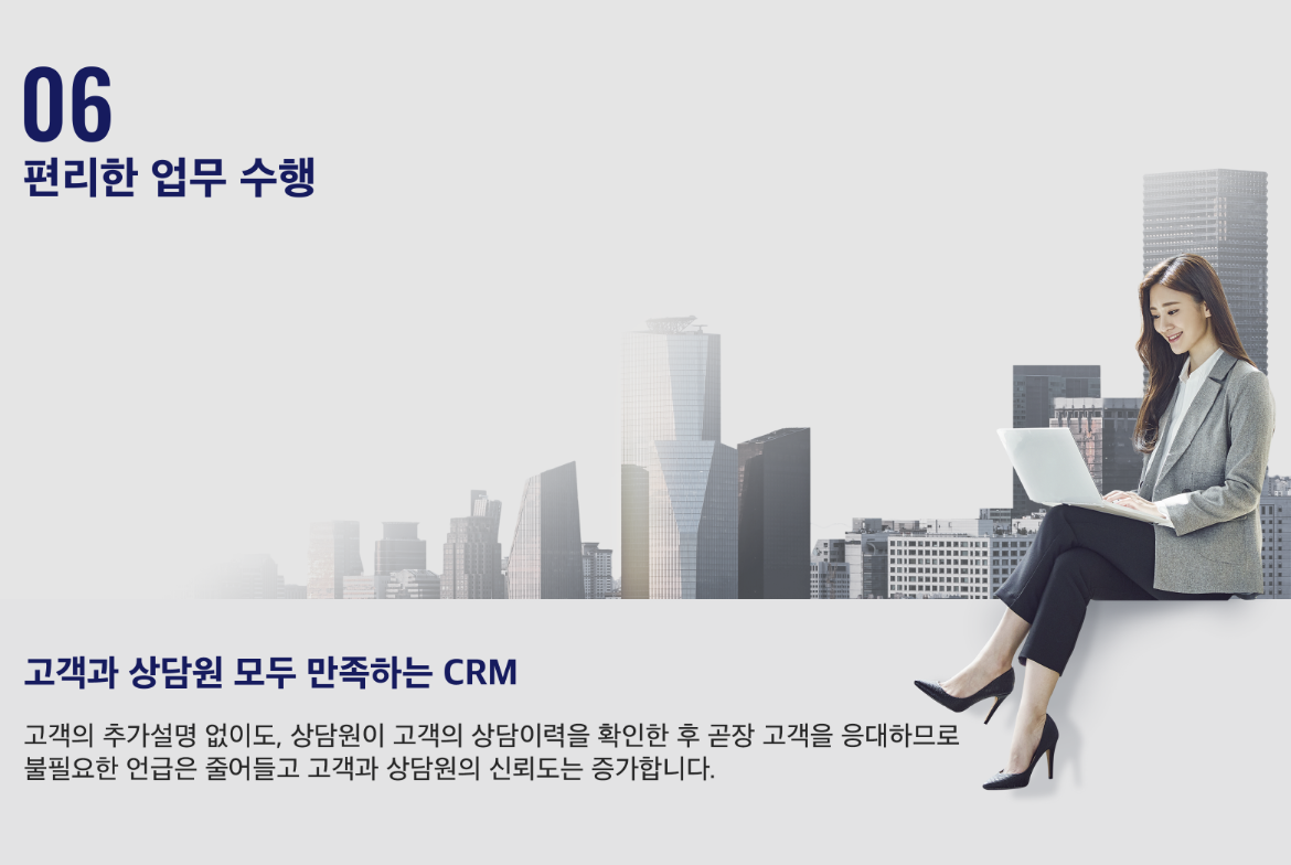 CRM 프로그램은 한번 도입을 하게 되면 기존에 사용하던 DB정보 또는 익숙함 때문에 재변경하기가 어려울 수가 있습니다. 그래서 최초 도입하거나 불편한 점이 있다면 원하시는 기능을 정확하게 상담받으시고 도입하는 게 좋습니다.