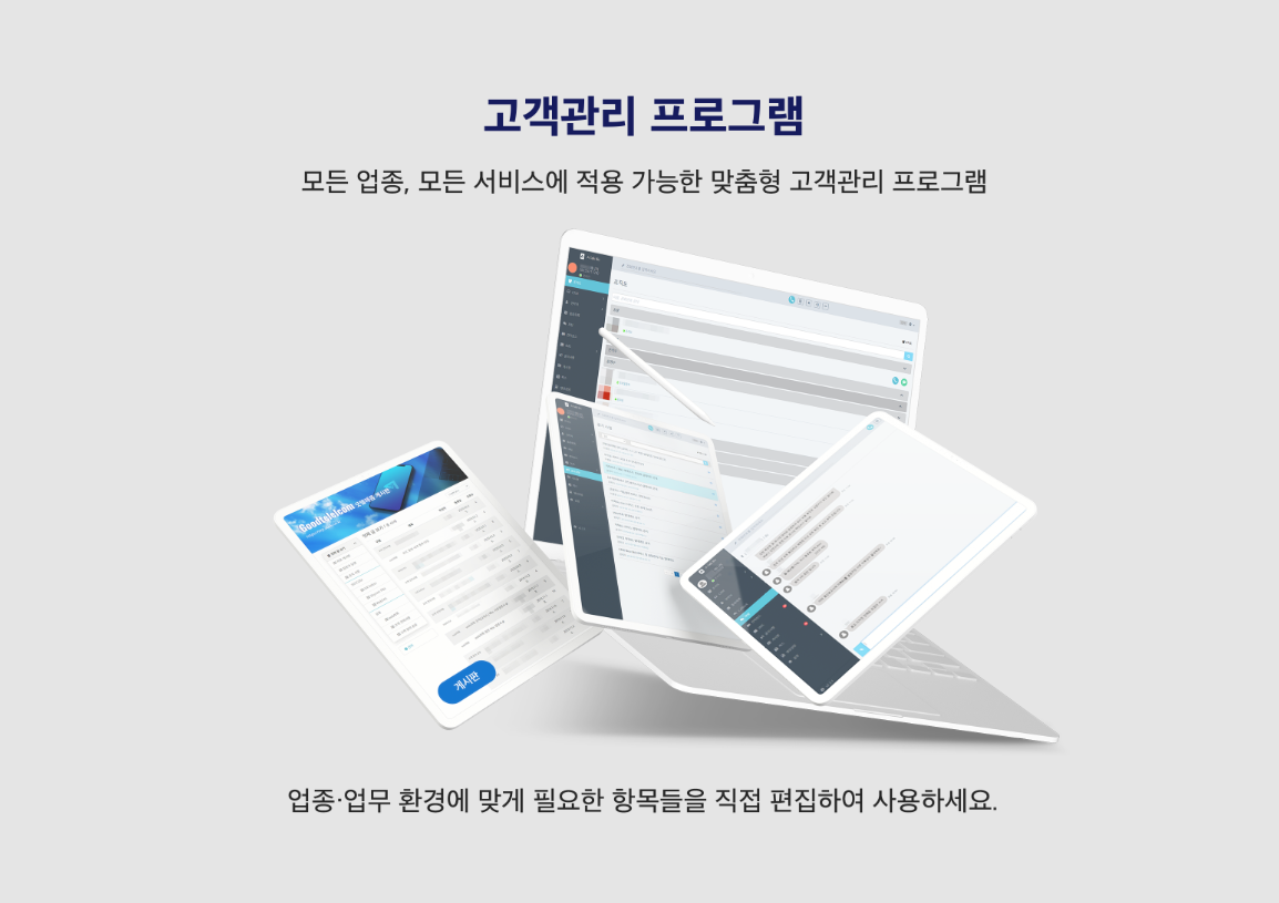 CRM프로그램은 사용하는 업체마다 방식, 성격이 다르기 때문에 프로그램을 편집할 수 있는 솔루션으로 선택하시는 게 좋습니다. 고정된 항목들은 사용하려고 하는 방식과 다르기 때문에 실 사용에서 많은 불편함을 느낄 수 있습니다.