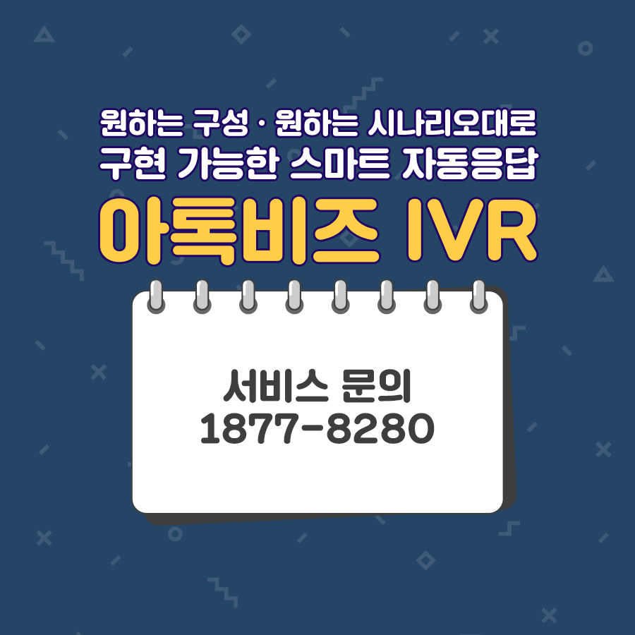안녕하세요, 아톡비즈 서비스입니다. 아톡비즈는 전화를 걸면 자동으로 흘러나오는 음성 멘트, 숫자 키패드 입력을 통해 여러가지 메뉴로 넘길 수 있는 자동응답기능(ARS,IVR)을 구축해드리고 있습니다.