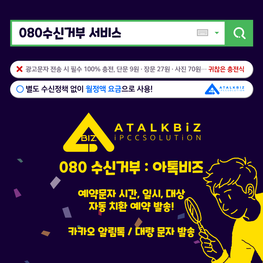 타사 대비 저렴한 아톡비즈 080수신거부!