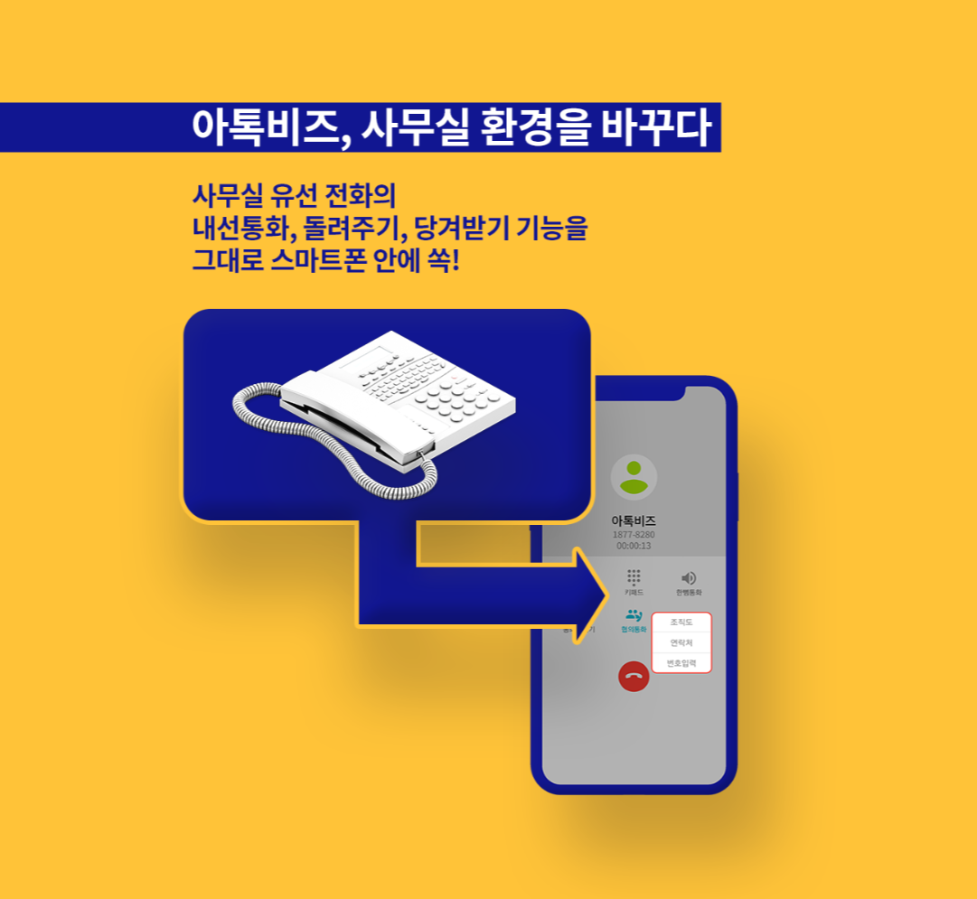 아톡비즈 어플 하나로 사무실 유선 전화의 모든 기능을 사용하세요!