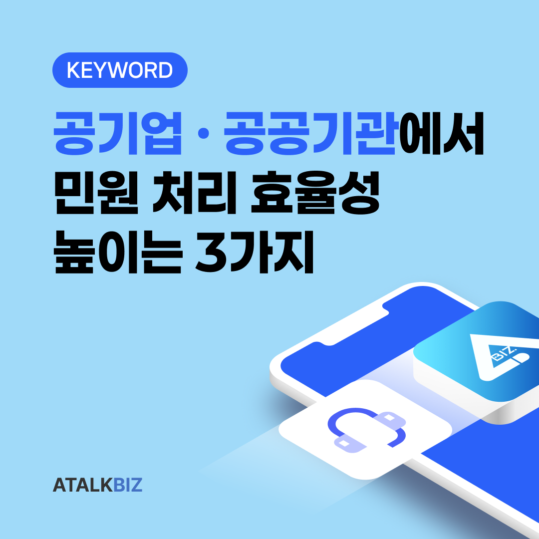그래서 오늘 아톡비즈가 공기업, 공공기관의 민원 처리 업무를 개선하여 효율성을 높일 방법 3가지를 소개해드리려고 합니다.